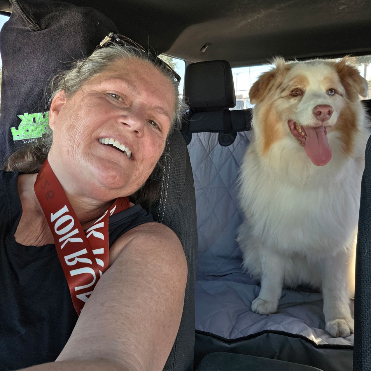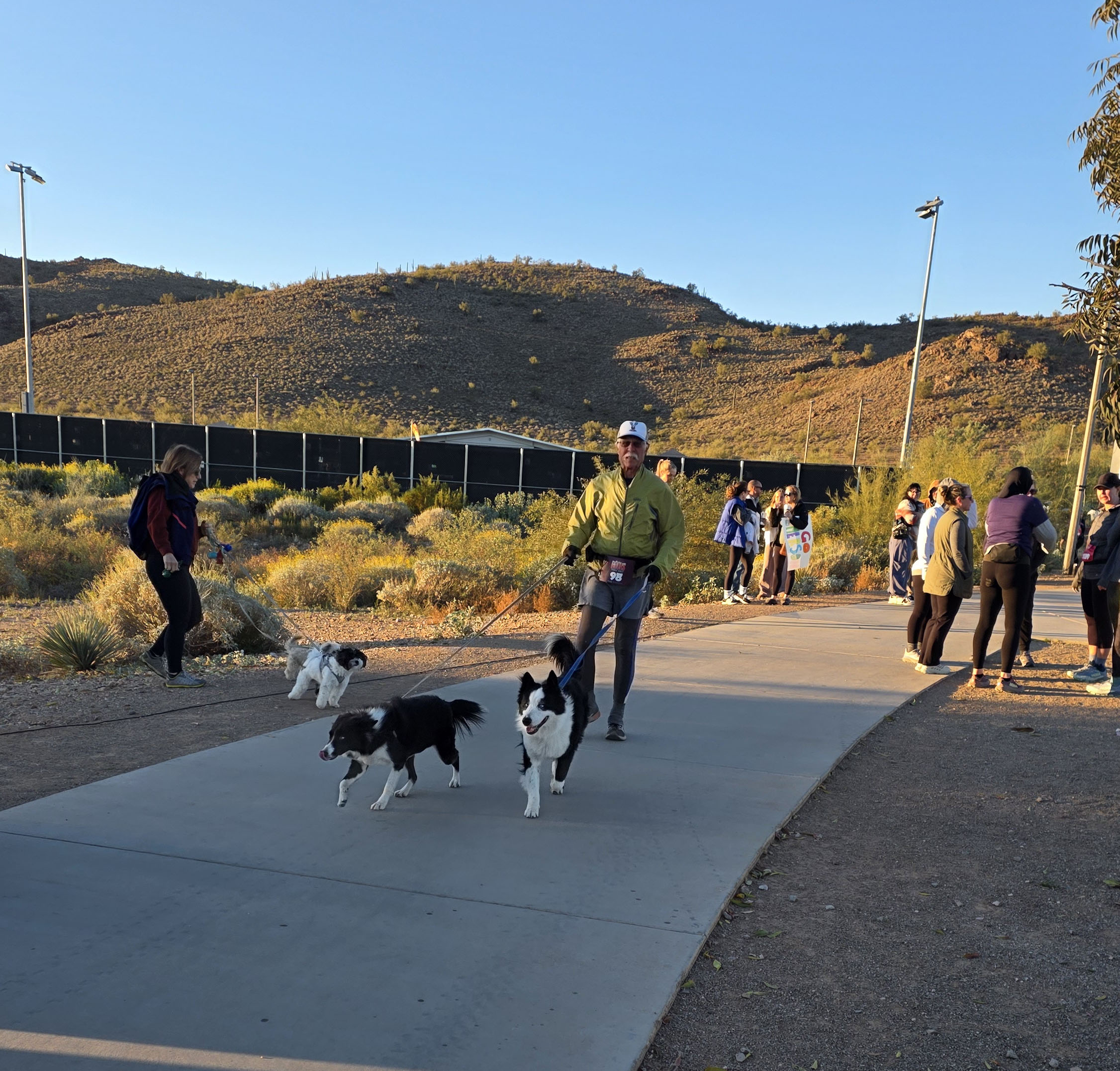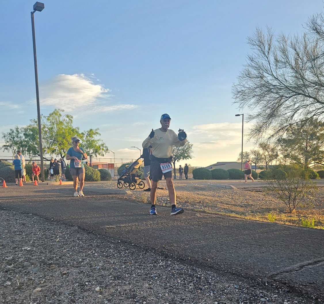 AZ VETERANS 1/2 MARATHON, NOVEMBER 9, 2025, PEORIA, AZ (with Blue and Suri) TIME 3:20:58, PACE 15:60 no profile of the course as basically flat with only 195 ft of ascent FINISH 50th, 1st in 75+ AGE GROUP |