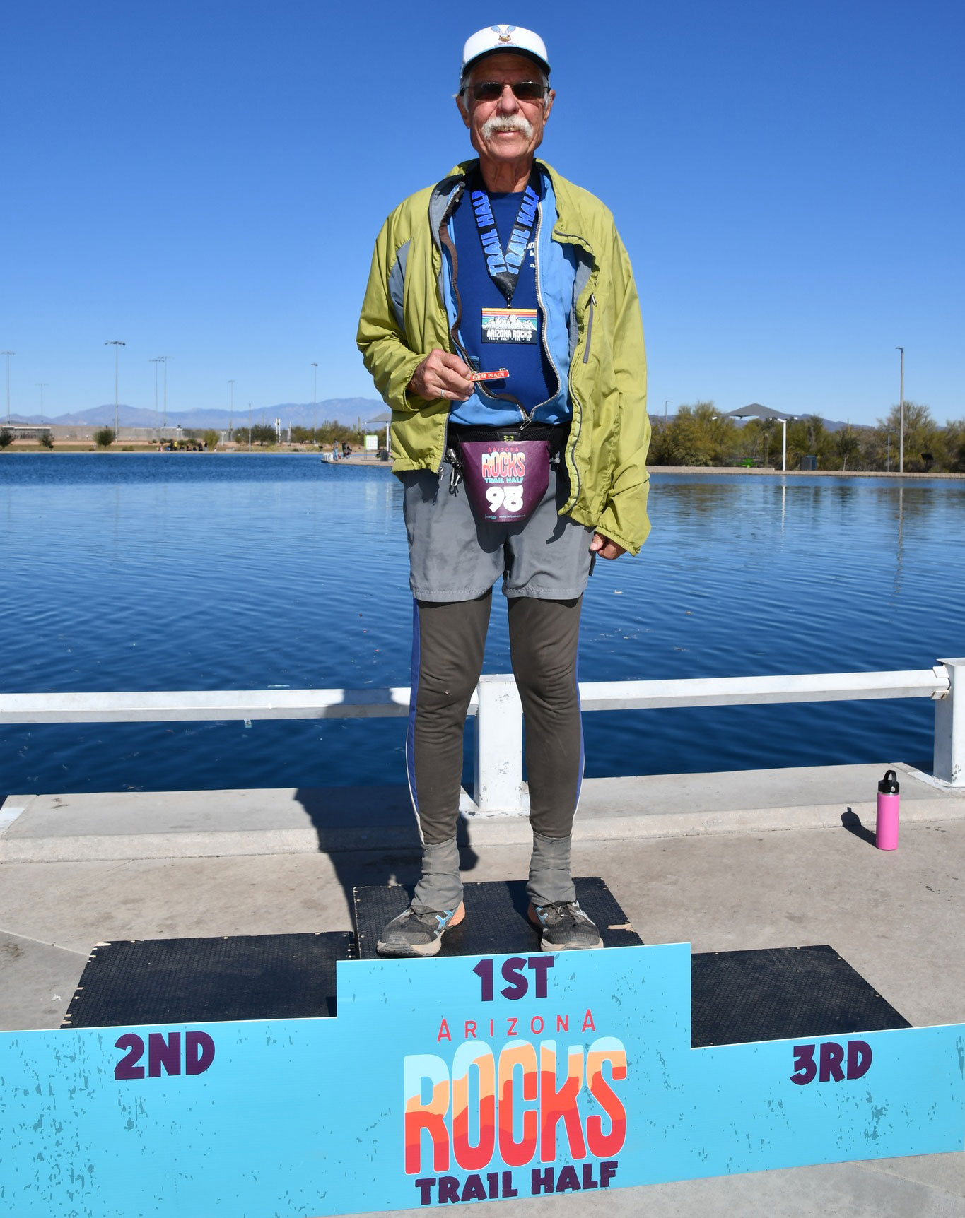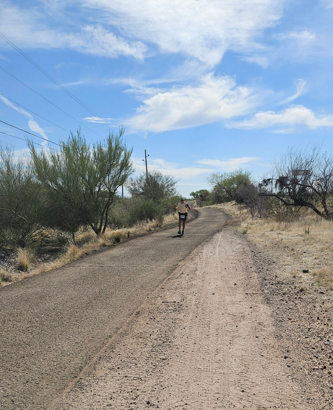 ARIZONA ROCKS TRAIL HALF MARATHON, JANUARY 25, 2026, PEORIA, AZ TIME 3:46:48, PACE 17:18 no profile of the course as basically flat with only 95 ft of ascent FINISH 68th, 1ST IN 75+ AGE GROUP |
