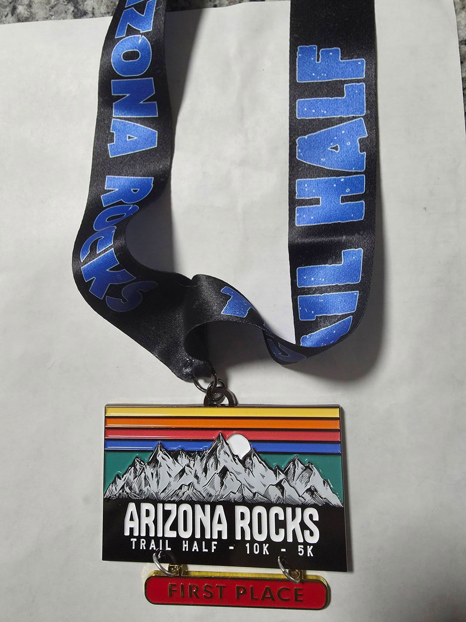 ARIZONA ROCKS TRAIL HALF MARATHON, JANUARY 25, 2026, PEORIA, AZ TIME 3:46:48, PACE 17:18 no profile of the course as basically flat with only 95 ft of ascent FINISH 68th, 1ST IN 75+ AGE GROUP |