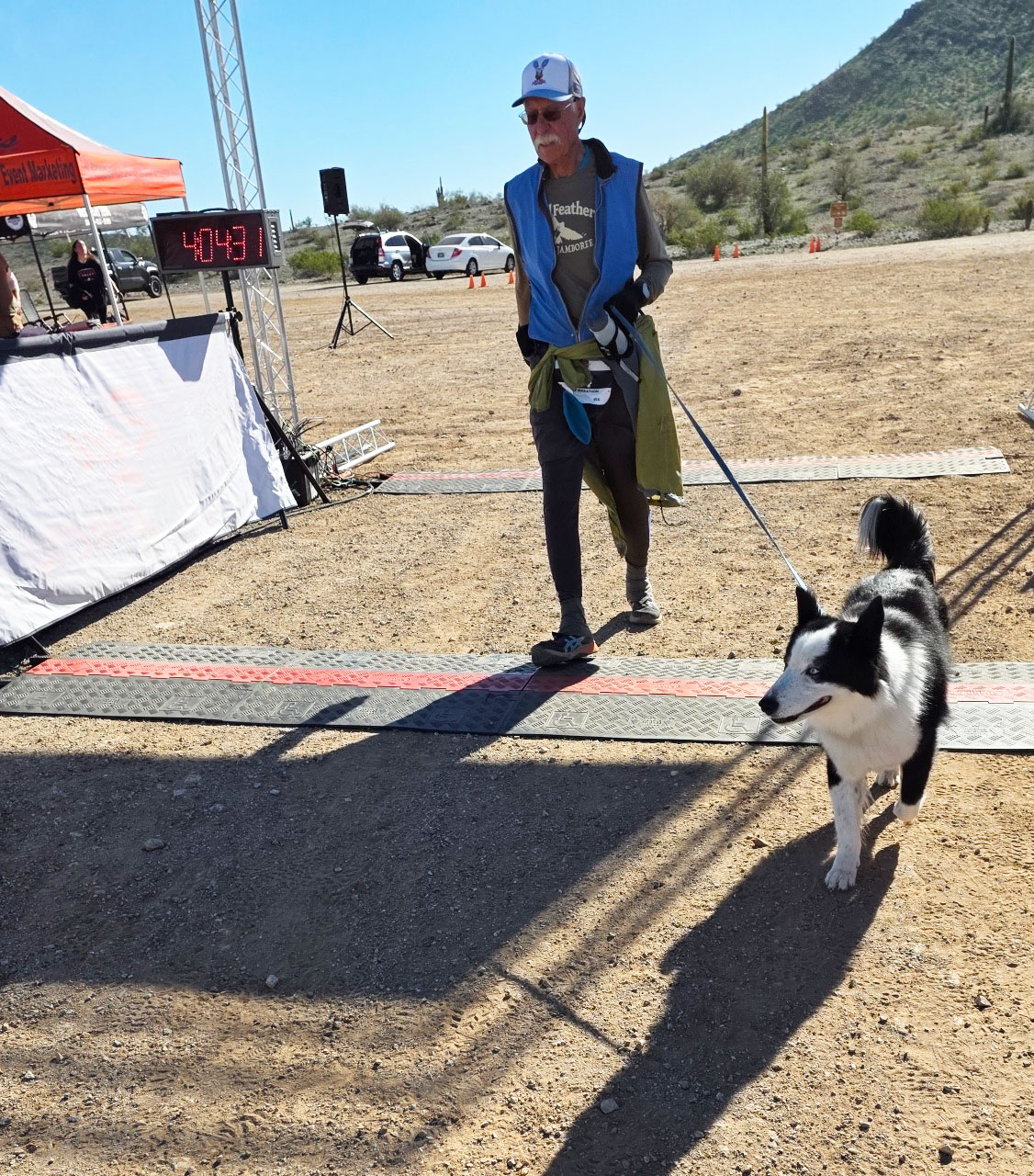 AZ VETERANS 1/2 MARATHON, NOVEMBER 9, 2025, PEORIA, AZ (with Blue and Suri) TIME 3:20:58, PACE 15:60 no profile of the course as basically flat with only 195 ft of ascent FINISH 50th, 1st in 75+ AGE GROUP |